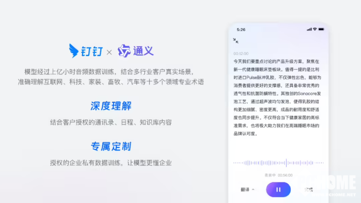 在实际运用中,企业需授权相关数据接入后,Fun-ASR可结合企业在钉钉中的通讯录、日程、知识库等信息进行推理优化。例如,顾家家居在使用该模型后,经过定制化训练,能够准确识别“比利时进口Pulse脉冲乳胶”“Sonocore发泡工艺”等专业表述,提升销售场景的客户沟通效率。