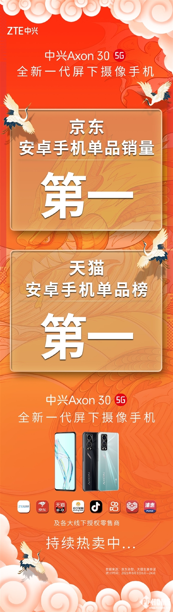 今日上午,中兴手机官方公布了中兴Axon 30屏下版首销24小时战报,斩获了京东安卓手机单品销量第一、天猫安卓手机单品榜第一的好成绩!中兴Axon 30屏下版载新一代屏下摄像技术,肉眼几乎无法辨别细微差别。除非是特定的角度,浅色背景下,屏幕上方隐藏的摄像头也几乎看不见了。