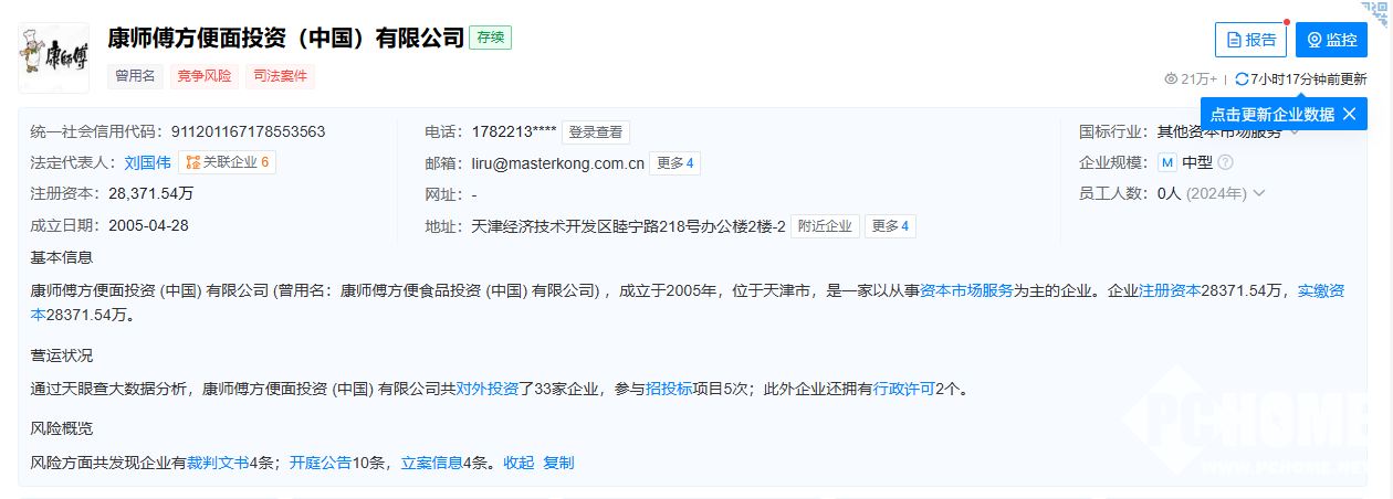 PChome发现,8月25日天眼查工商信息显示,康师傅方便面投资(中国)有限公司发生重要人事变动,黄自强卸任法定代表人、董事长职务,由刘国伟接任。