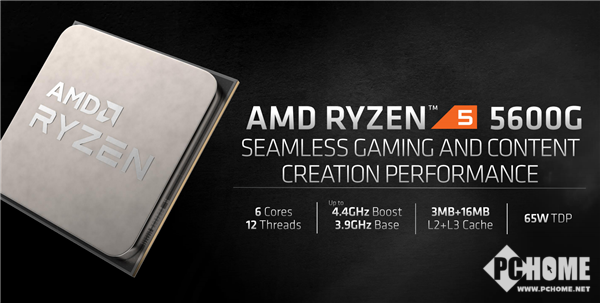 锐龙5 5600G 6核心12线程,二级缓存3MB,三级缓存16MB,基准频率3.9GHz,最高加速4.4GHz,集成Vega 7 GPU,频率1.9GHz。