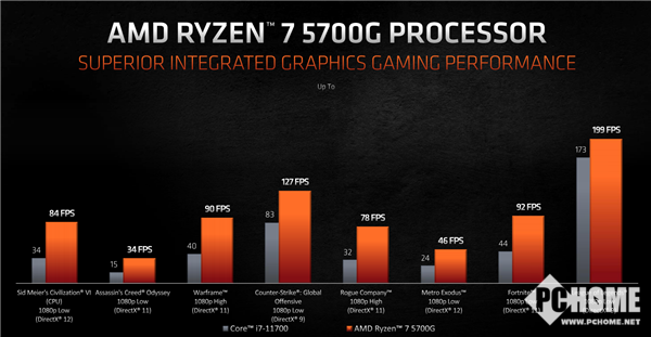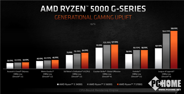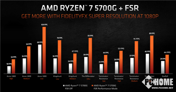 另外凭借FSR加速技术,锐龙7 5700G可以在不同游戏中获得大幅性能提升,不少都可以轻松翻倍。