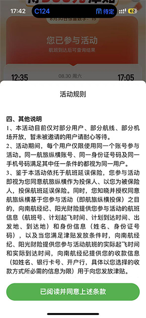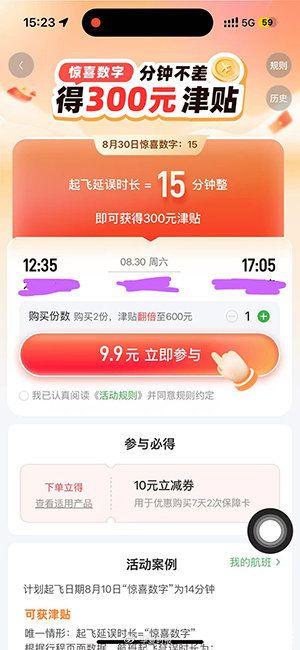 据了解,该产品售价9.9元,由南航保险经纪提供保险经纪服务,阳光财险承保,航旅纵横作为投保人。投保页面上,“300元津贴”等字样以红色加粗突出展示,而关键的“=”“整”等字则字体较小,容易被消费者忽略。不少用户在购买后才发现,与常见的“延误超过一定时间即可理赔”的延误险不同,该产品要求精确匹配分钟数。