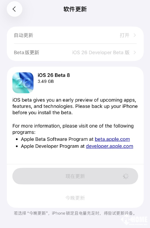 PChome认为,iOS 26 Beta 8虽然性能有所优化,稳定性有所提升,但可能存在未被发现和修复的隐藏Bug,因此,不建议普通用户为满足日常使用需求下载该版本,可耐心等待正式版推出。已安装iOS 26测试版的开发者,以及追求新系统且能够接受小概率Bug的苹果发烧友,更适合下载该版本。
