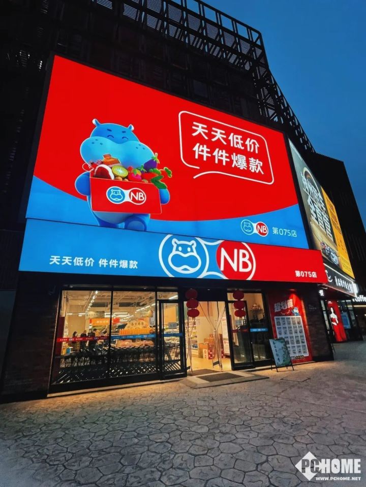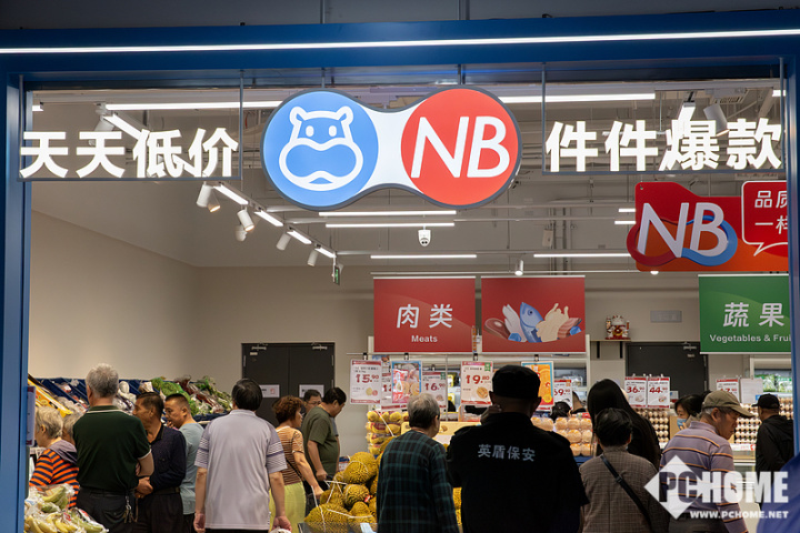 据了解,盒马NB是盒马在折扣业态持续探索的成果。2021年,盒马社区折扣超市盒马奥莱业务推出,其货源多为盒马鲜生大店的临期商品,价格是大店的3-5折。目前部分盒马奥莱门店已改为盒马NB,还有部分门店已关闭。与盒马鲜生不同,盒马NB多选址于临街商铺和社区型商场,客单价约40元,满足三餐的生鲜占比达45%,吸引了部分原本对盒马鲜生大店品牌心智较低、习惯在菜市场买菜的人群。