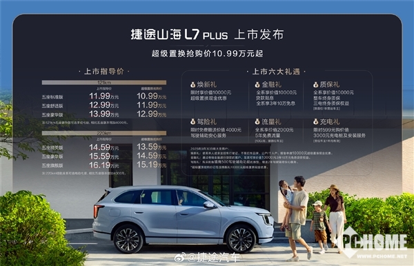 昨日晚间,奇瑞捷途旗下全新中型SUV——山海L7 PLUS正式上市,官方指导价区间11.99万至16.19万元,并同步推出超级置换抢购方案,价格区间为10.99万至15.19万元。新车在设计、空间、智能化和动力系统方面进行了全面升级。