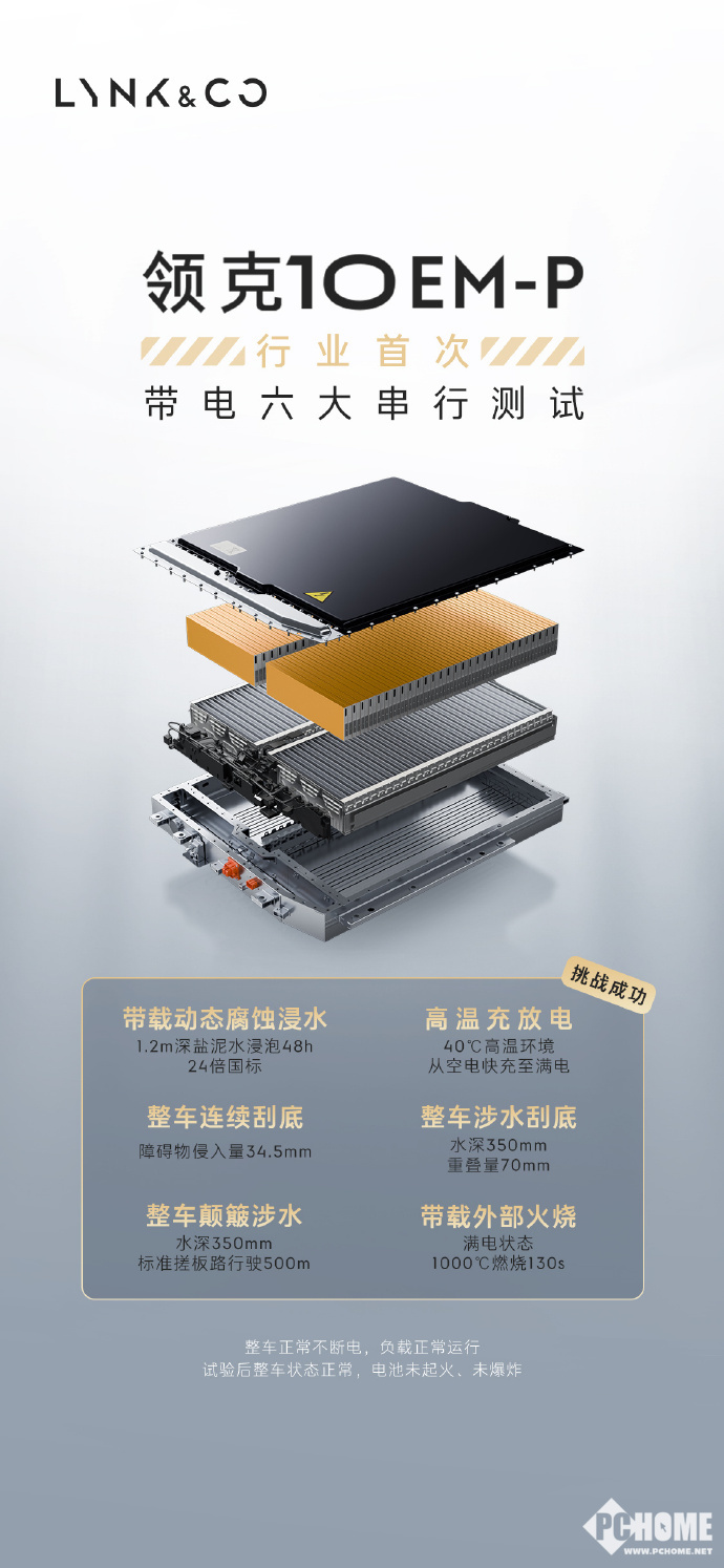 据了解领克10 EM-P基于CMA Evo 原生新能源架构打造,搭载吉利自研的神盾金砖电池,该电池近期成功通过中汽中心“整车+整包”带电六大串行极端测试,满电状态下历经带载动态腐蚀浸水、高温充放电及整车连续刮底等考验,电池不起火不爆炸,整车状态正常 。动力方面,领克10 EM-P配备1.5T Evo全新电混专用引擎与DHT Evo混动电驱系统,配合后桥P4电机,实现全系四驱。系统综合功率390kW,零百加速5.1秒。