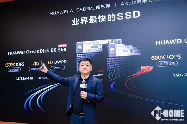 8月27日,华为在数据存储AI SSD新品发布会上正式推出OceanDisk EX、SP、LC三大系列固态硬盘,随机写性能最高达150万IOPS,写入时延低于7微秒,耐久性达到60 DWPD。
