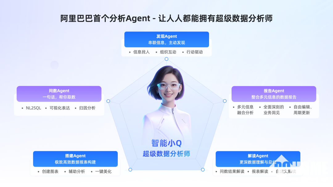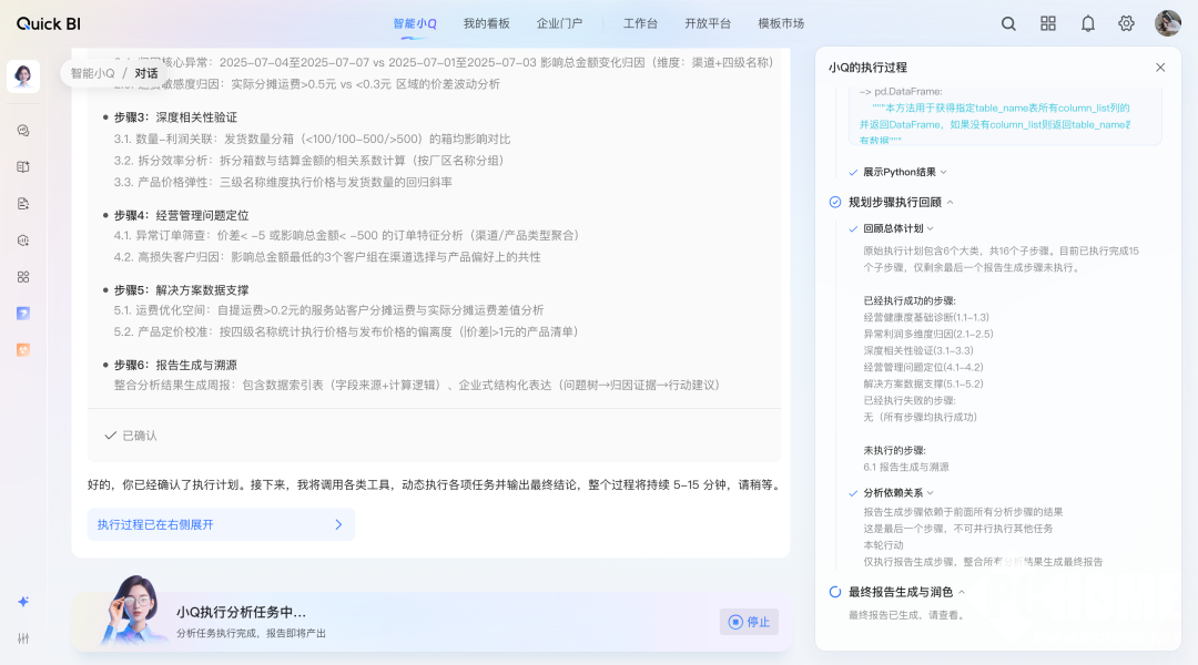 8月28日,阿里巴巴旗下瓴羊发布首个数据分析Agent,这一创新成果让Quick BI中的“智能小 Q”摇身一变,升级成为由问数、解读和报告三大核心Agent组成的“超级数据分析师”。