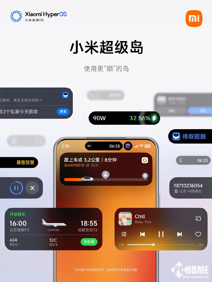 金凡表示,“岛”对用户最重要的价值是方便了解正在发生、需要重点关注的信息。据了解,小米澎湃OS 3定制超窄字体,小空间也能展示完整信息,支持三岛并存,可完整呈现用户最关注的信息。并且小米超级岛无需中止当前应用,下拉小窗即用即走,行程信息还能便捷拖拽顺手分享。