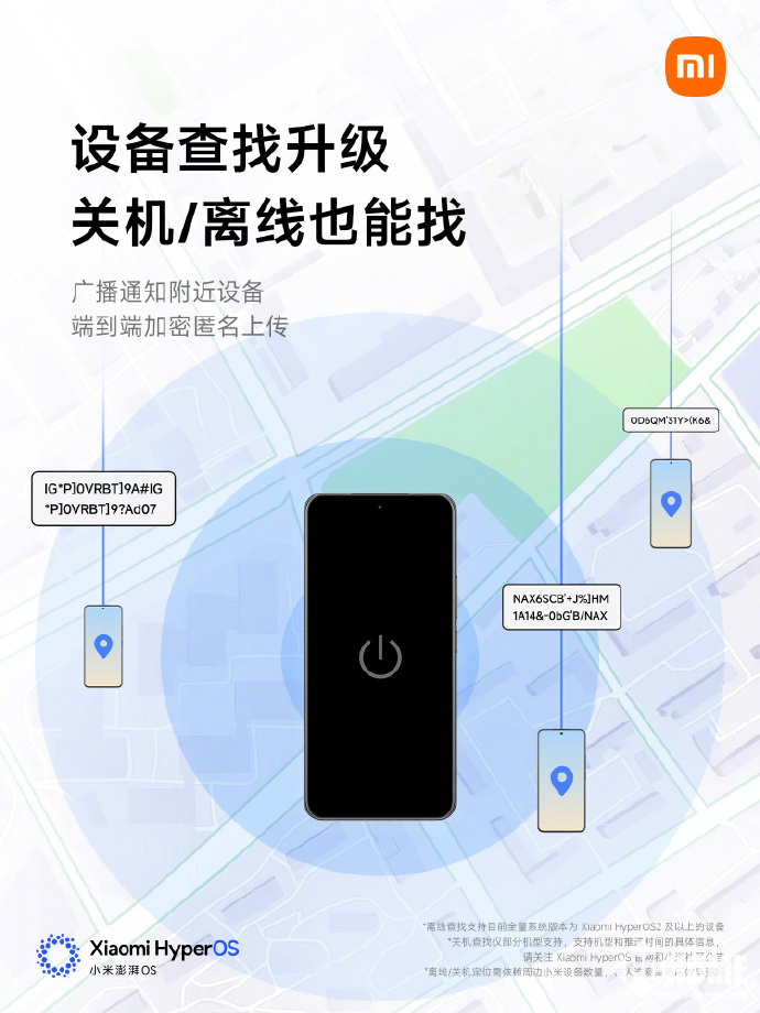 本次升级还改进了设备查找服务,支持在设备关机或离线状态下进行定位。该系统利用附近小米HyperOS设备的匿名化协作,通过端到端加密方式上传位置信息,帮助用户追踪设备位置。