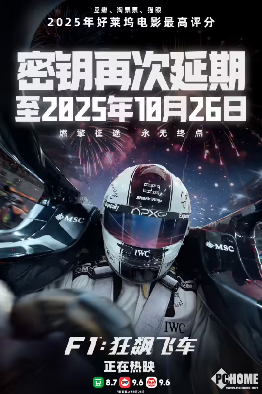 8月28日,华纳兄弟官方宣布,由布拉德・皮特主演的赛车题材影片《F1:狂飙飞车》将在中国内地继续延长上映,密钥延期至10月26日。这是该片继此前延至8月26日后的再次延期。