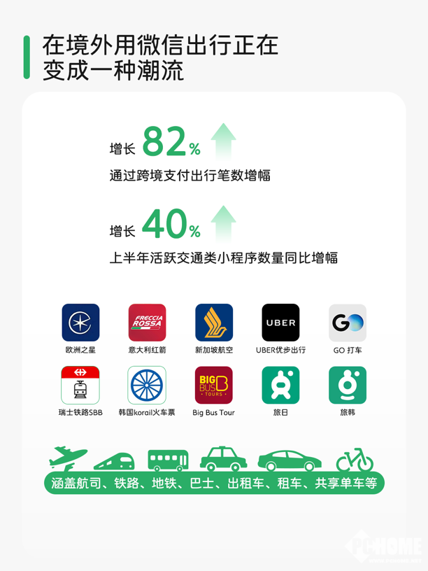 暑期跨境出行相关支付笔数同比增长82%,交通出行类小程序数量上半年同比增幅达40%,欧洲之星高铁等平台正借助微信小程序优化对中国用户的服务体验。此外,境外消费场景进一步扩展至日常小店、特色旅游和极限运动等,新加坡老巴刹、墨尔本跳伞、新西兰徒步项目均支持微信支付。