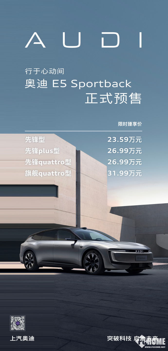 8月29日,上汽奥迪今日在2025成都车展宣布旗下AUDI品牌首款车型E5 Sportback将于9月16日正式上市。新车已于8月18日启动预售,预售价为23.59万元-31.99万元。