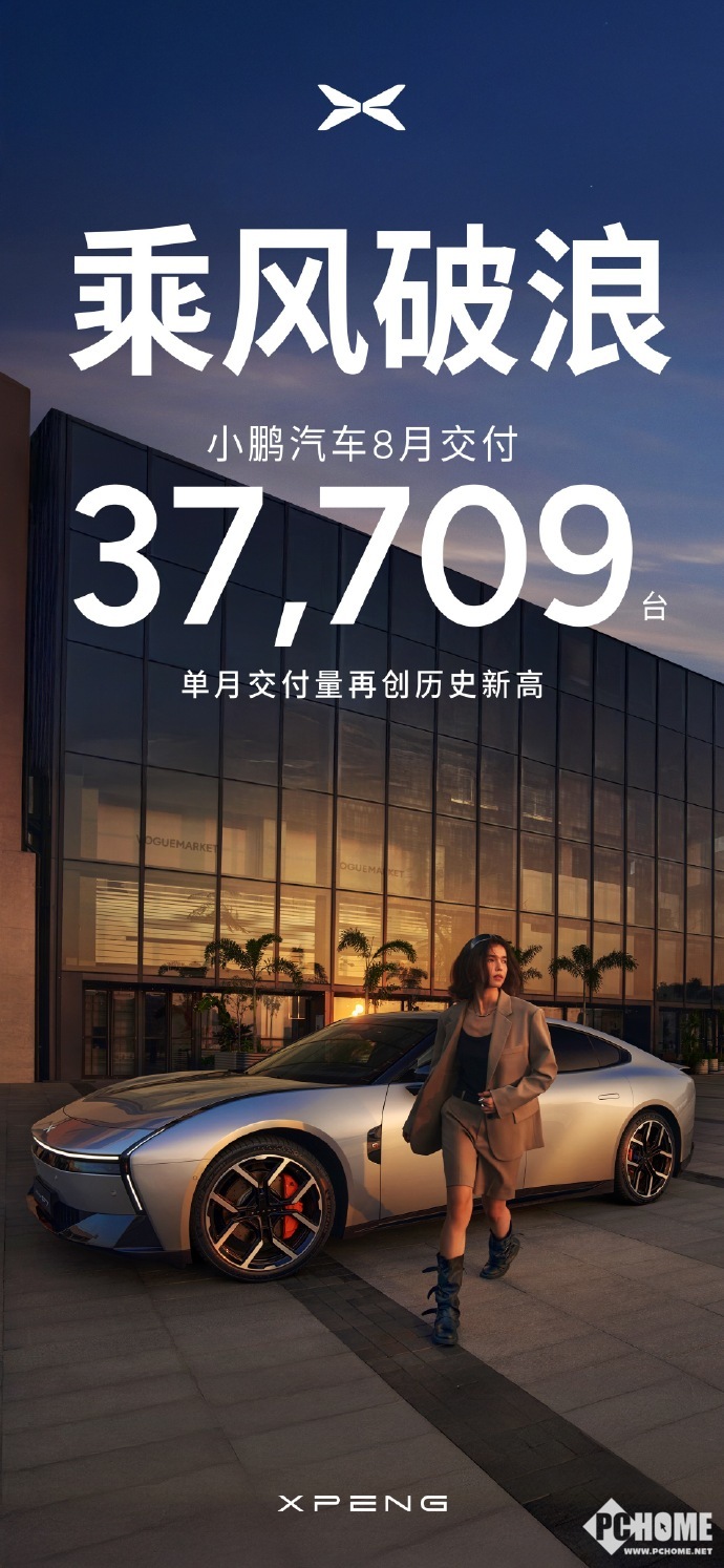 9月1日,小鹏汽车今日公布最新8月份的交付数据,该月交付新车3.77万辆,较7月的3.67万辆环比增长2.7%,相较于去年8月同比大幅增长168%,再度刷新品牌单月交付纪录。