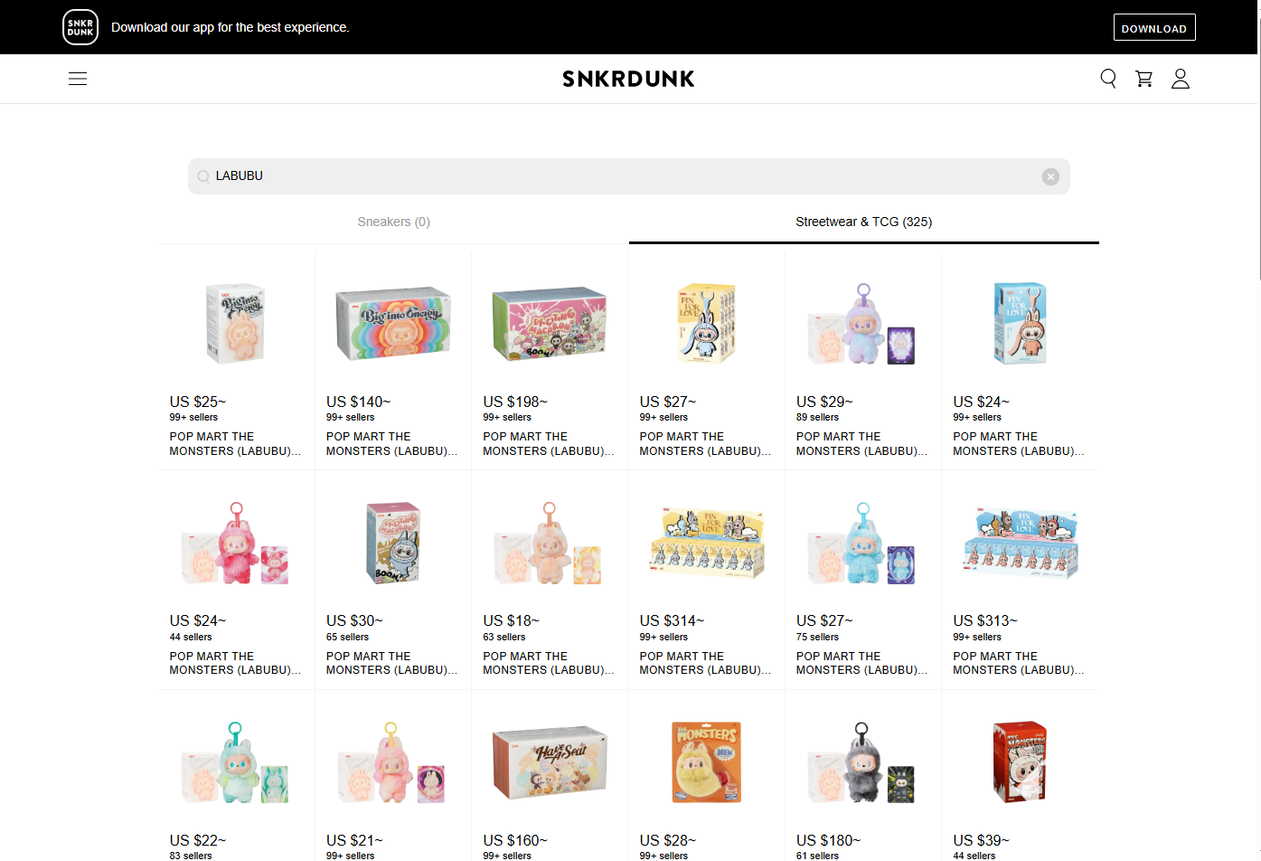 近日,泡泡玛特旗下IP LABUBU在日本二手交易平台的热度持续升高,相关产品在东京及其他主要城市的流通量和价格均出现明显上涨。据公开数据显示,今年7月,日本二手平台SNKRDUNK上LABUBU的交易额较年初扩大约66倍。