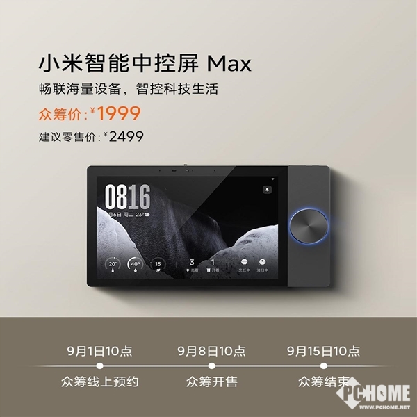 近日,小米在有品平台上线了首款官方大屏幕中框产品“小米智能中控屏Max”。该设备众筹价为1999元,建议零售价2499元,众筹周期自9月8日10时至9月15日10时。