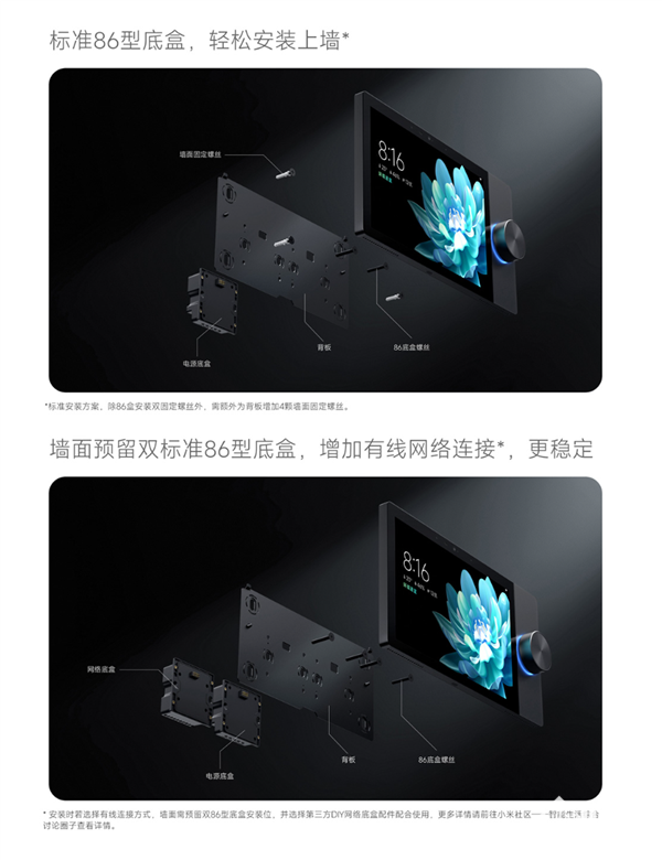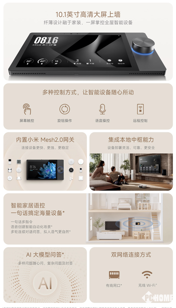 与此前用户常用的小米平板、屏幕音箱不同,中控屏Max首次面向家庭场景推出专门的上墙固定式解决方案,满足用户对统一操作平台的需求。新设备配备10.1英寸高清屏幕,支持触控、旋钮、语音及远程四种操控方式。产品采用86型底盒安装,支持零火供电和双频Wi-Fi连接,同时内置小米Mesh2.0网关。