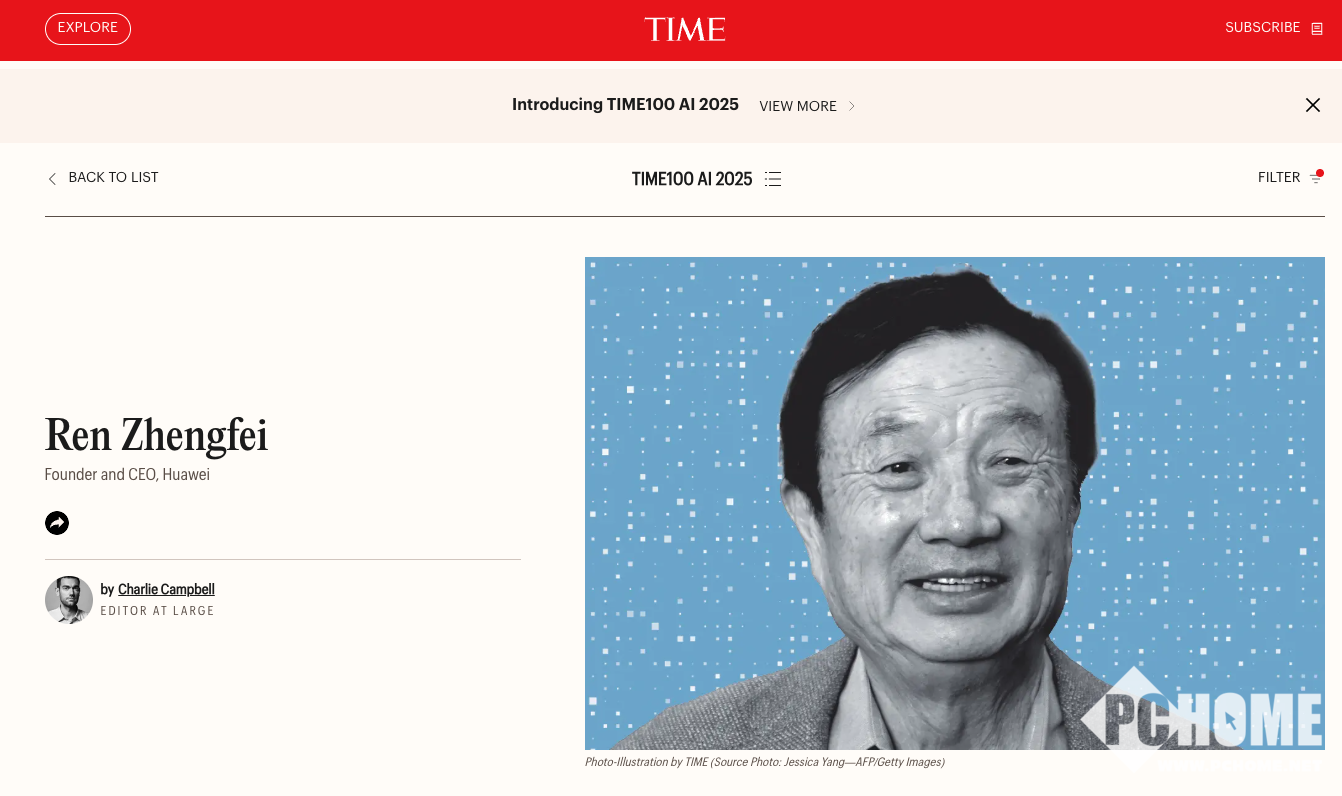 PChome了解到,《时代》周刊年度AI百人榜“领导者”中包括华为创始人任正非、DeepSeek创始人兼CEO梁文锋、宇树科技创始人兼CEO王兴兴等。