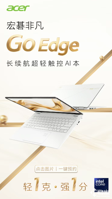 9月1日,宏碁正式发布Go Edge 14英寸笔记本电脑,新品以990g重量和14.9mm厚度为主要卖点,定位轻薄便携,同时强调AI算力与高性能配置,预售价9999元,已在京东开启预约。