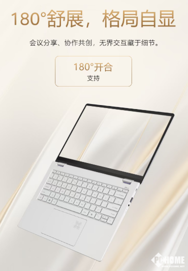 在外观设计方面,Go Edge 14机身A/C/D面均采用铝镁合金材质,A面辅以乌金色双箭头纹理,触控板配有AI呼吸灯,可随操作动态点亮。转轴支持180°开合,可多人协作展示。散热部分配备大尺寸风扇和双铜管,结合DustDefender防尘技术。