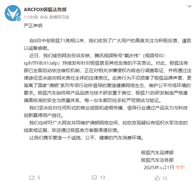随着汽车行业竞争愈发激烈,车企面临的舆论环境日益复杂。此前,极氪等车企也曾因类似不实言论,通过悬赏征集线索、法律诉讼等方式积极维权。此次极狐法务部的行动,再次为行业敲响警钟,警示任何企图通过造谣、诋毁获取不当利益的行为都将受到法律制裁。
