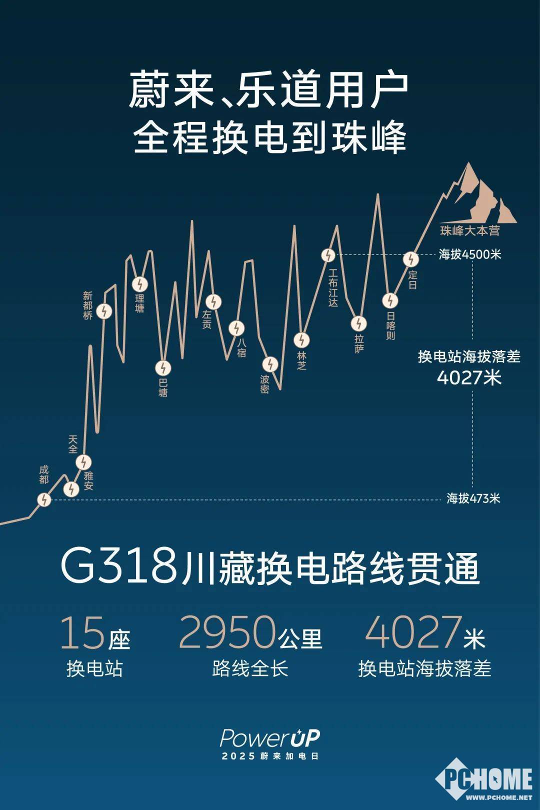 蔚来于8月16日贯通G318川藏换电路线,全长2950公里,布局15座换电站。8月29日至10月12日期间,该线路向所有蔚来和乐道用户提供不限次数免费换电服务。
