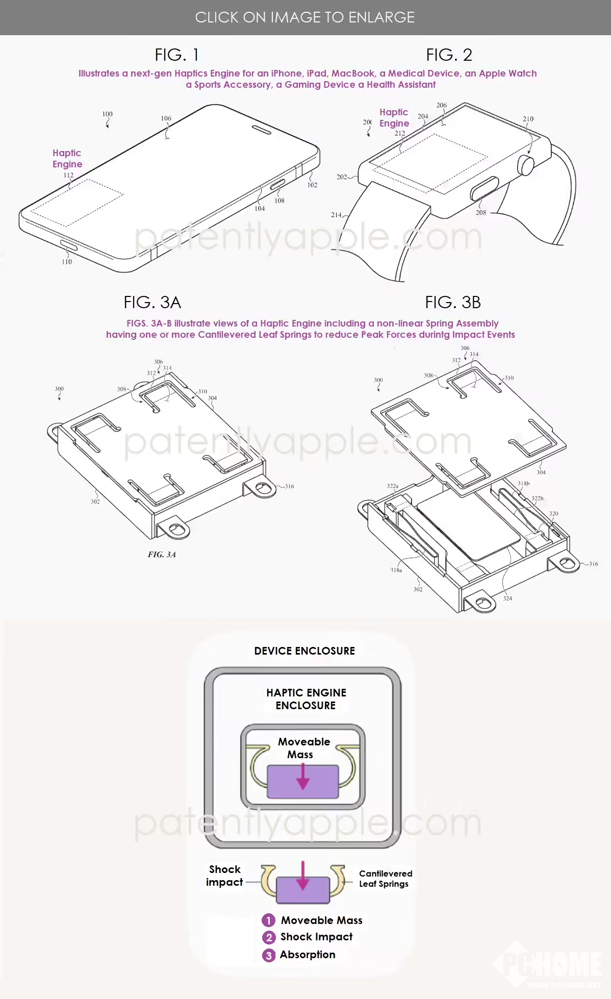 昨日,据科技媒体patentlyapple报道,苹果公司近日获得一项涉及触觉引擎的新专利,通过机械系统提升电子设备的抗冲击性能。专利文件显示,这项技术通过在触觉引擎外壳内部集成非线性弹簧组件来实现增强保护。