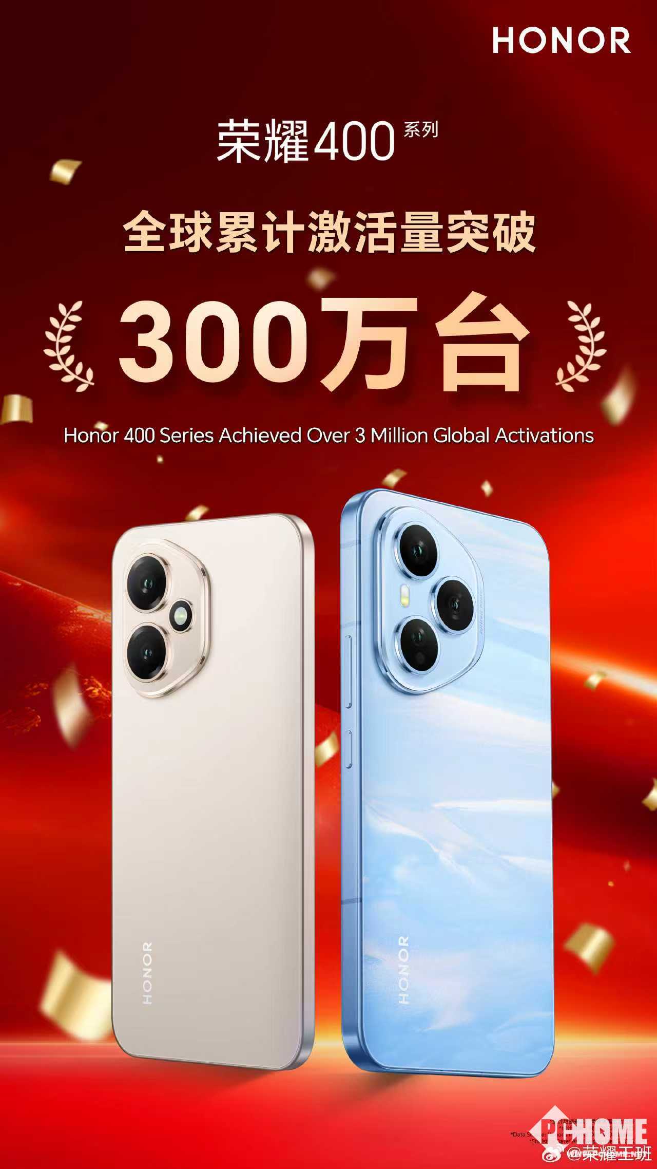 9月8日,荣耀终端销售与服务总裁王班在微博发布战报:荣耀400系列全球激活量突破300万台。这款机型于5月28日发布,6月6日正式开售,定位中端机型,开售首月激活量破百万,创下荣耀手机三年来最快破百万的纪录,展现出强劲的市场号召力。