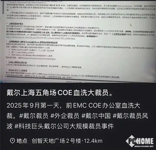 多名员工在社交平台透露,裁员范围涵盖戴尔在上海五角场COE和中山公园CDC等核心办公点。有员工表示,公司在全球范围内的裁员比例约10%,部分员工获得N+3赔偿,但新入职不足一年的员工赔偿相对较少,仅为N+2。