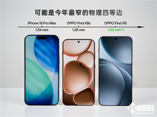 根据介绍,OPPO Find X9延续了前代在窄边框上的研发优势,并进一步缩窄物理四等边边框,较Find X8s再度提升,可望成为今年智能手机中最窄的物理四等边机型。OPPO Find系列从Find X8到Find X8s再到Find X9,已连续三代在屏幕边框工艺上进行迭代,并投入超过亿元资金自研屏幕产线。