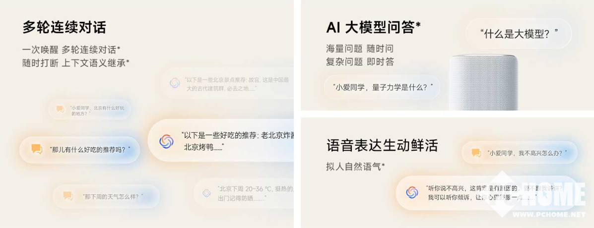 智能交互方面,音箱内置超级小爱语音助手,基于Xiaomi HyperOS大模型驱动,不仅能流畅执行查天气、设提醒、播音乐等常规指令,还能进行AI写作、实时翻译。此外,该音箱绑定小米账号后,可语音控制智能家居,实现全屋智能联动。