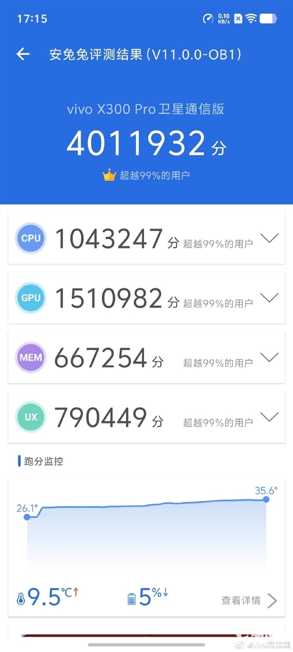 性能方面,X300 Pro搭载联发科天玑9500处理器,在室温环境下跑分突破400万,创下手机行业历史新高。该处理器采用1+3+4三丛集架构,最高主频达4.21GHz,集成全新Mali-G1-Ultra MC12 GPU,光追性能和能效表现均有显著提升。