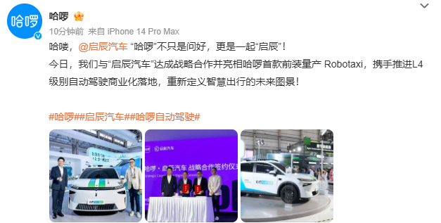 公开资料显示,哈啰成立于2016年,以共享单车切入市场,随后拓展至电动车、共享助力车及顺风车业务,并逐渐形成综合出行平台。此次跨入Robotaxi领域,意味着哈啰正从“工具型平台”向“智能出行生态”全面转型,未来或将在自动驾驶与智能交通的融合中寻找新的增长曲线。
