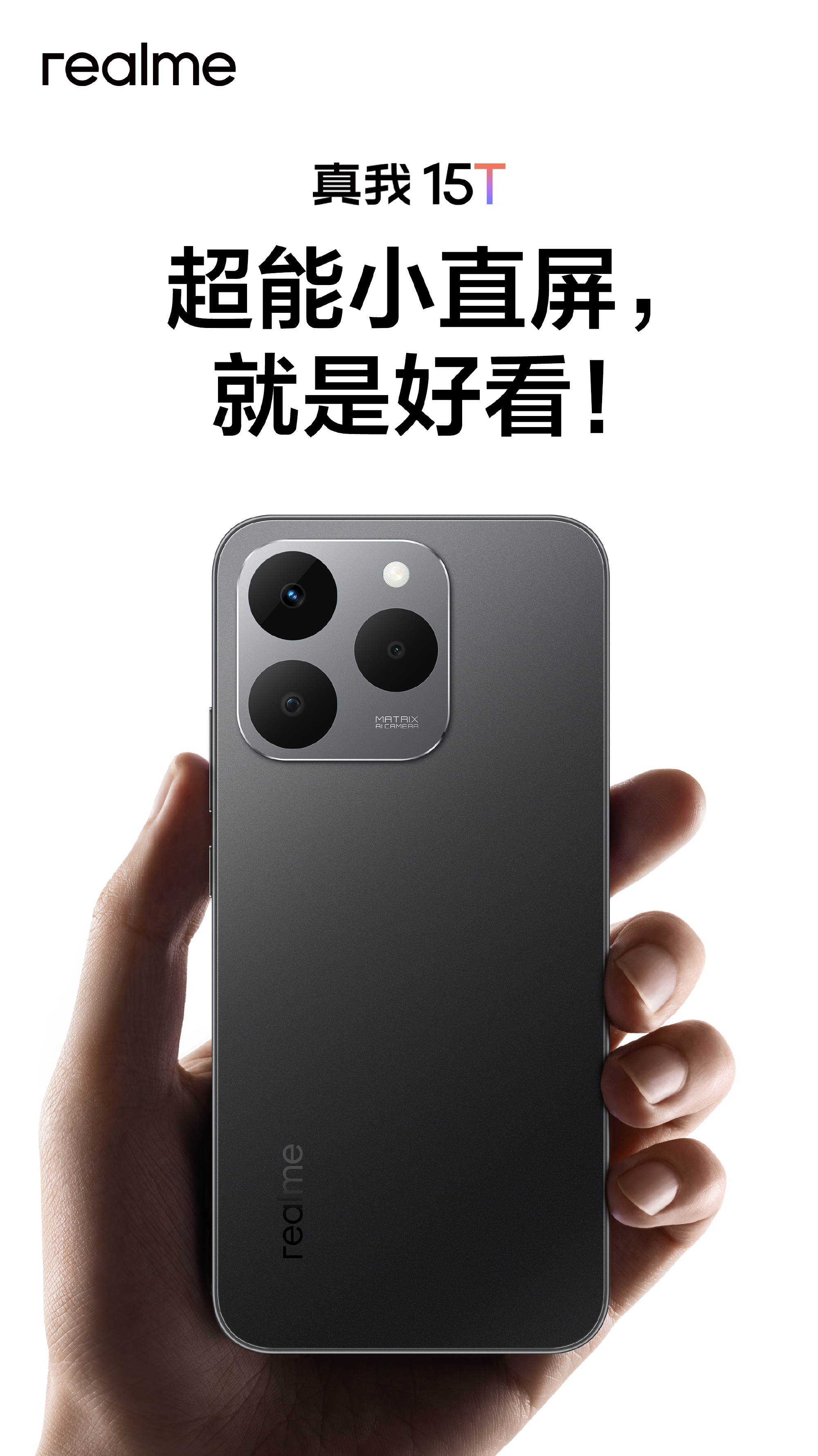 从预热图片看,真我15T黑色款采用低调设计语言,后摄模组形似iPhone Pro系列,但装饰框材质改用哑光金属形成差异化。其搭载6.57英寸直屏,分辨率2372×1080,峰值亮度达2200尼特,印证“超能小直屏”定位。目前,海外版本提供钛色、丝蓝色、流银色三种配色,国行或延续该方案。