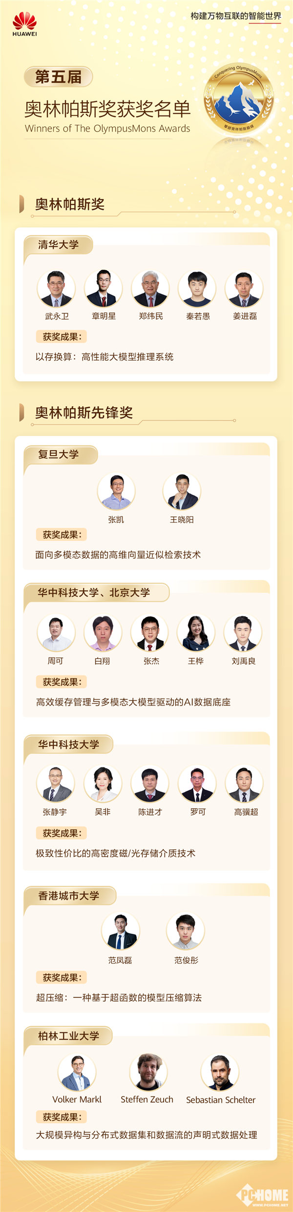 据介绍,本届赛事共吸引来自19所高校及研究机构的95位专家学者申报,最终评审委员会评出1项奥林帕斯奖和5项奥林帕斯先锋奖。华为表示,获奖团队将在后续与企业建立技术交流渠道,并获得科研支持,推动成果进一步应用落地。