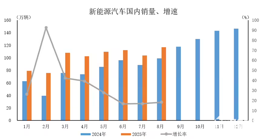 9月17日,中国汽车工业协会数据显示,2025年8月我国新能源汽车产业继续保持高速增长。单月产量达到139.1万辆,销量为139.5万辆,同比增幅分别为27.4%和26.8%,环比增速均超过25%。