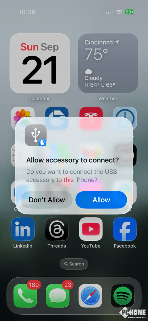 在iOS 26系统中,当用户将iPhone连接至任何有线配件(包括充电线、扩展坞等)时,系统会弹出提示,要求用户选择是否允许数据传输。如果选择“拒绝”,设备仍可充电,但数据交互将被完全阻断;若选择“允许”,则需在手机解锁状态下确认后,才能进行文件、照片等数据的传输。
