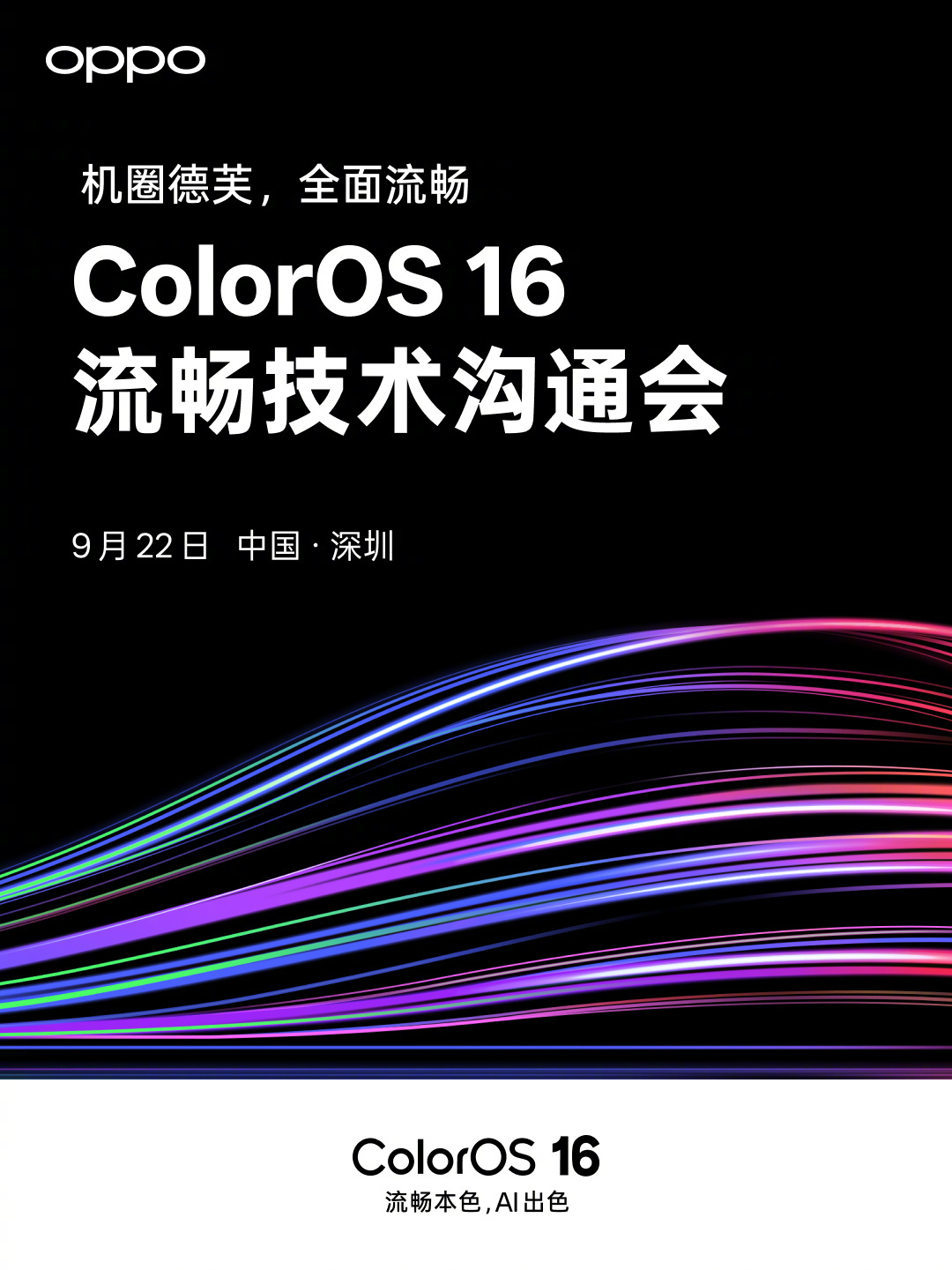 2025年9月22日,OPPO官微发布消息称,2025年OPPO开发者大会将于10月15日在深圳举办,届时将推出宣传口号为“流畅本色,AI出色”的ColorOS 16系统,还有AI技术生态峰会分享、 AI体验畅想,以及干货满满的十大分论坛。
