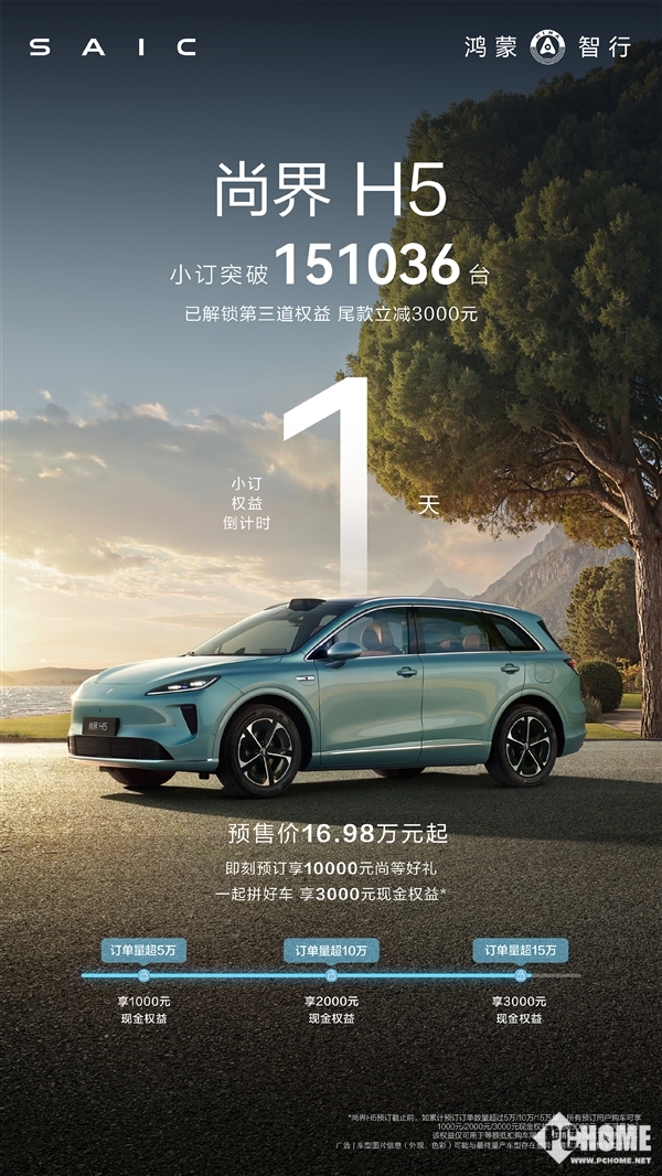 9月22日,据鸿蒙智行官方数据显示,尚界H5车型自8月25日开启预售以来,订单数量已突破15万台,并在开启预售的首个小时内即达到2.5万辆。根据规划,尚界H5将于明日晚间与全新问界M7同步发布。