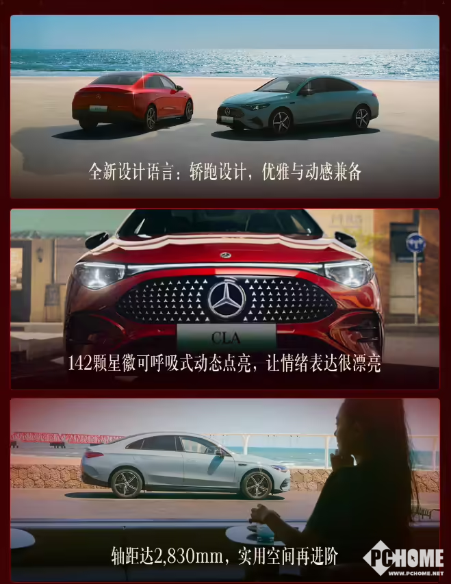 作为奔驰在紧凑型纯电轿车市场的重要产品,CLA基于全新平台打造,轴距达2830mm,提供前备箱与后备箱总计超过500升的储物空间。车身配色包括曜岩黑、水月银、熔岩红、松雾青和北极白五种选择,前脸采用142颗星徽呼吸式动态灯光设计,进一步强化品牌辨识度。
