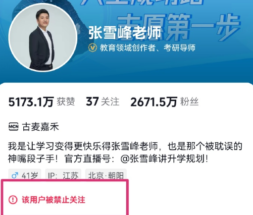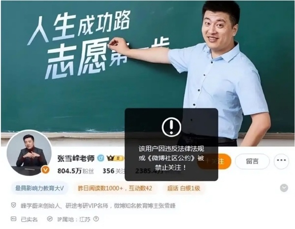 昨日,知名高考志愿规划讲师张雪峰的多个社交媒体账号在微博、抖音、快手、B站及小红书平台出现异常,均被限制“关注”功能,引发舆论热议。