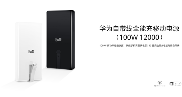 9月26日,华为正式上线首款自带线全能移动电源,定位旗舰级高功率快充产品,售价399元。这款新产品支持单口最高100W输出功率,并搭载智慧动态功率分配技术,可同时为两台设备进行快充。