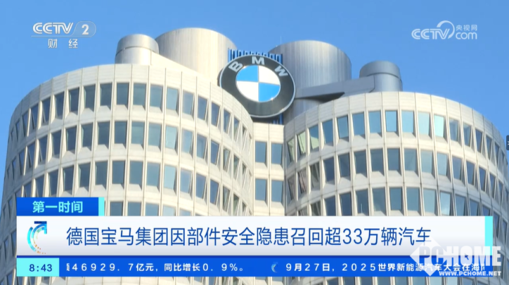 2025年9月28日消息,据央视报道,德国宝马集团因部件安全隐患,将召回超33万辆汽车。宝马尚未公布全球召回数量,但考虑到此次召回,涉及2015年9月至2021年9月宝马汽车生产的多款车型,影响范围可能覆盖更多国家。
