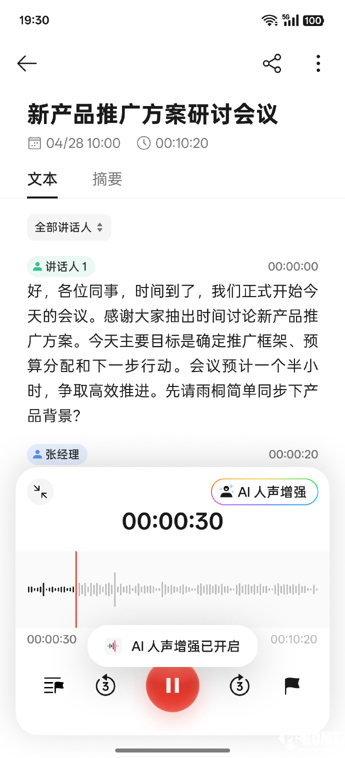 录音方面,ColorOS 16支持全新的“AI人声增强”,可以帮用户在回听的时候听清每一句话,即使有嘈杂背景,或者有会议室混响都可以消除。全新升级的“AI摘要”支持了更多样的摘要模版,还能智能识别内容来匹配最适合的模版。全新的摘要对关键信息的把握也会更详尽,更精准,可详可略。