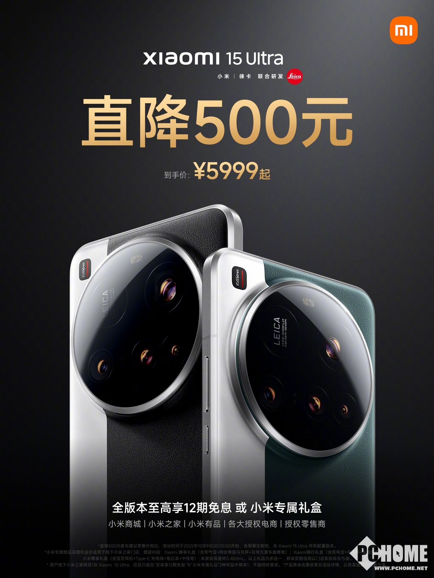 10月9日,小米官方宣布,旗舰机型小米15 Ultra即日起启动全版本价格调整,每款配置均直降500元,调整后12GB+256GB版本到手价5999元起。此次降价覆盖官方商城及全渠道授权平台,消费者可同步叠加平台福利,进一步降低入手门槛。