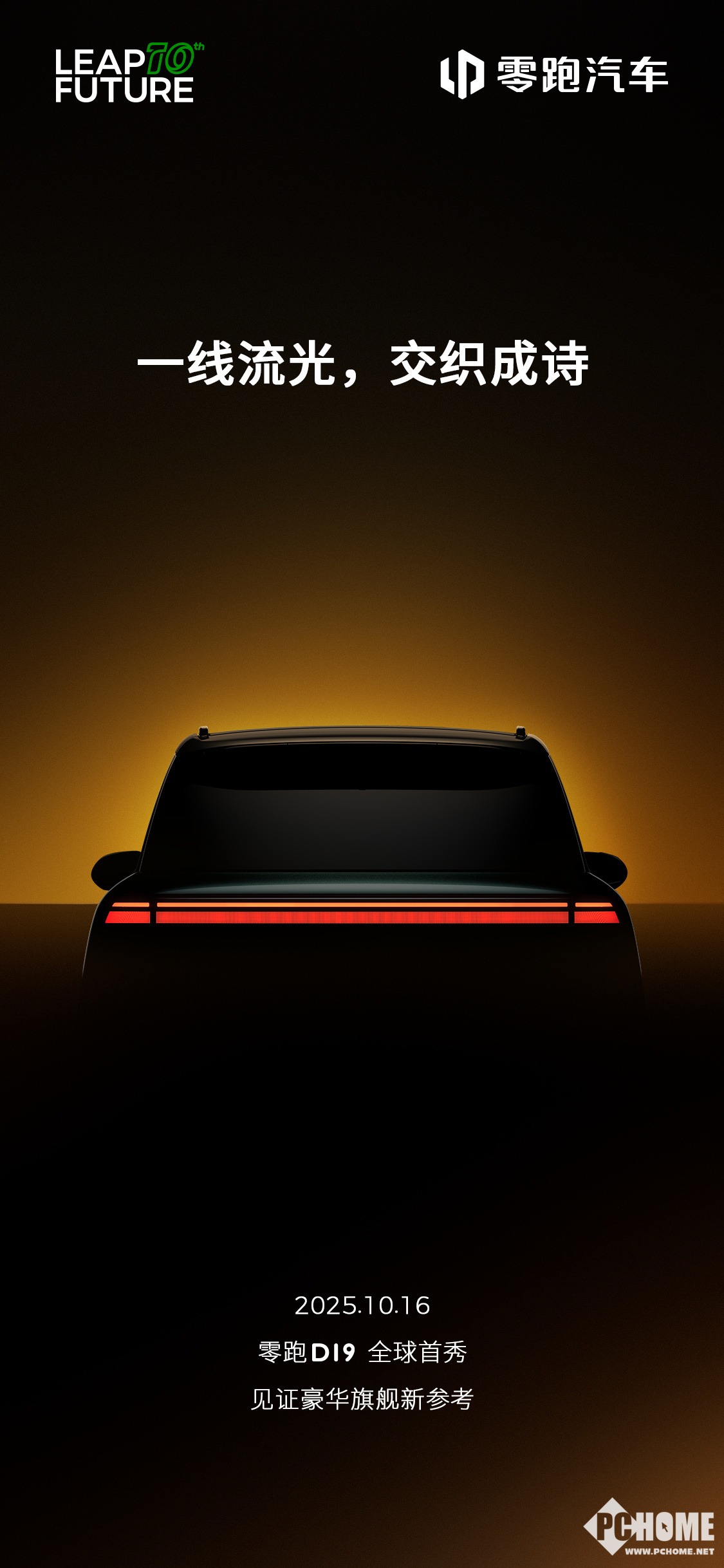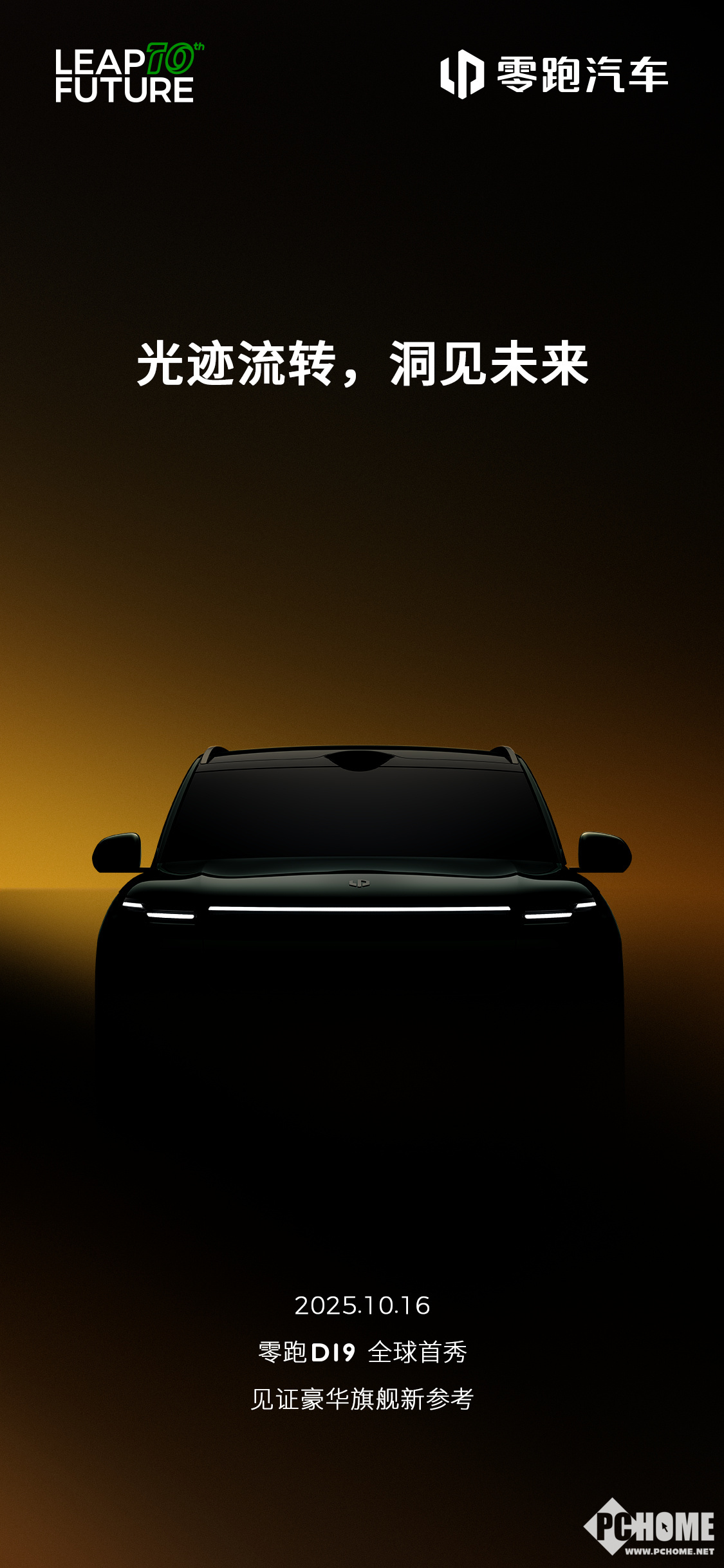 2025年10月10日,零跑汽车发布消息称,零跑D19将于10月16日全球首秀,宣传口号为“一线流光,亦可交织成诗。以光为笔,勾勒豪华旗舰新参考。”