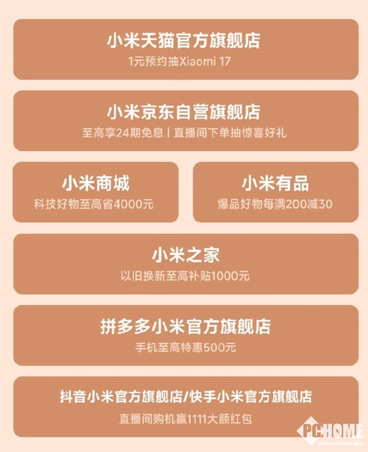 在小米天猫官方旗舰店,消费者仅需1元即可预约抽取Xiaomi 17,为想要拥有新款手机的用户带来惊喜机会。小米京东自营旗舰店推出了至高24期免息的福利,大大减轻了消费者的付款压力,同时直播间下单还能抽取惊喜好礼,让购物过程充满期待。 小米商城和小米有品也不甘示弱,小米商城科技好物至高可省4000元,小米有品爆品好物每满200减30,无论是追求科技体验还是喜爱各类好物的消费者,都能在这里找到实惠。