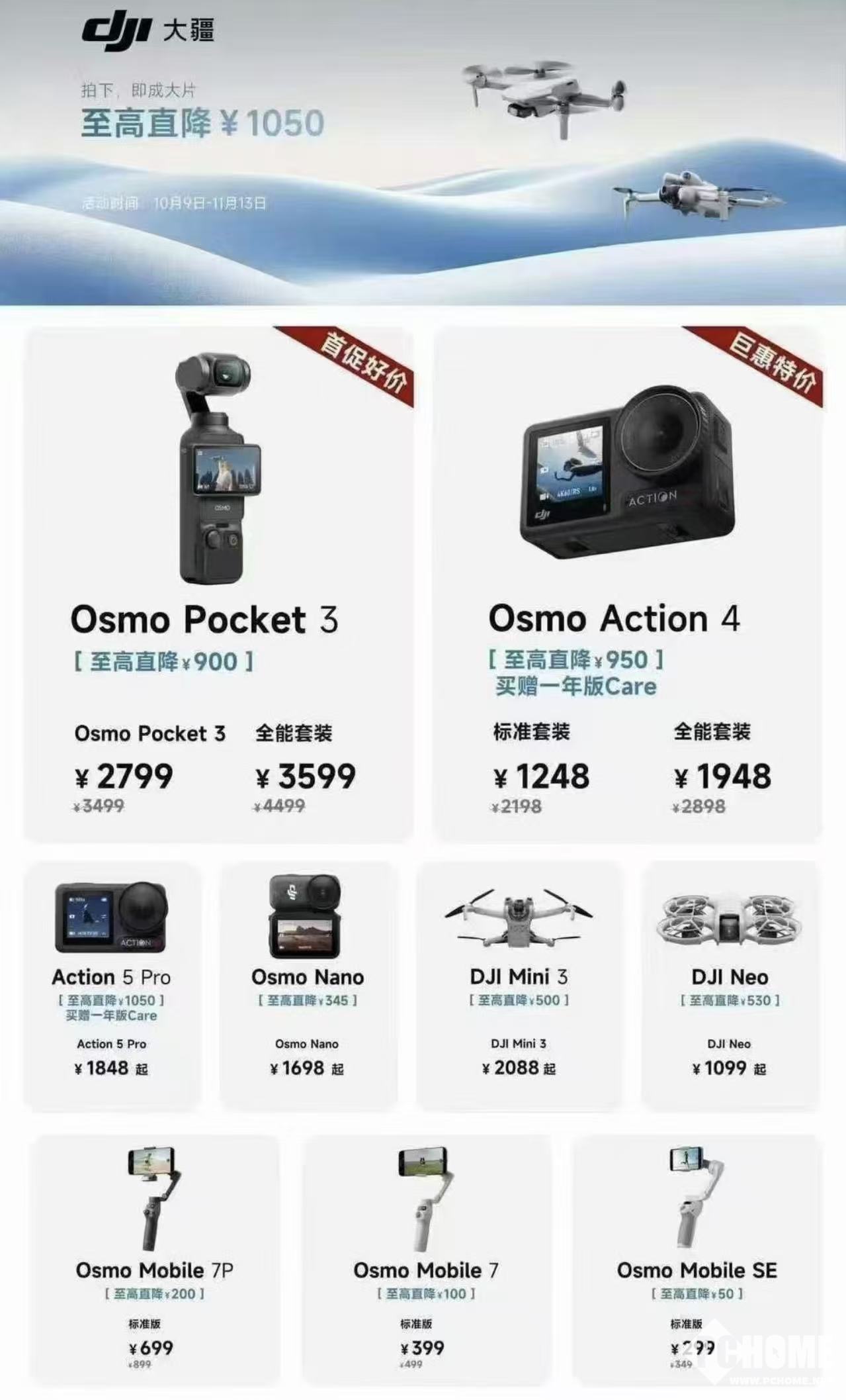大疆近期的降价潮为这场互动埋下伏笔。京东平台显示,大疆Mini4 PRO航拍无人机降幅达1478元,运动相机、户外电源等八类产品同步降价。尽管大疆回应称是“双十一常规促销”,但市场普遍关联影石的跨界动作——影石8月公测全景无人机“影翎Antigravity A1”,直接攻入大疆核心腹地,该产品8K画质参数超越大疆同级别机型。行业认为,影石的竞争压力是大疆调价的关键推手。
