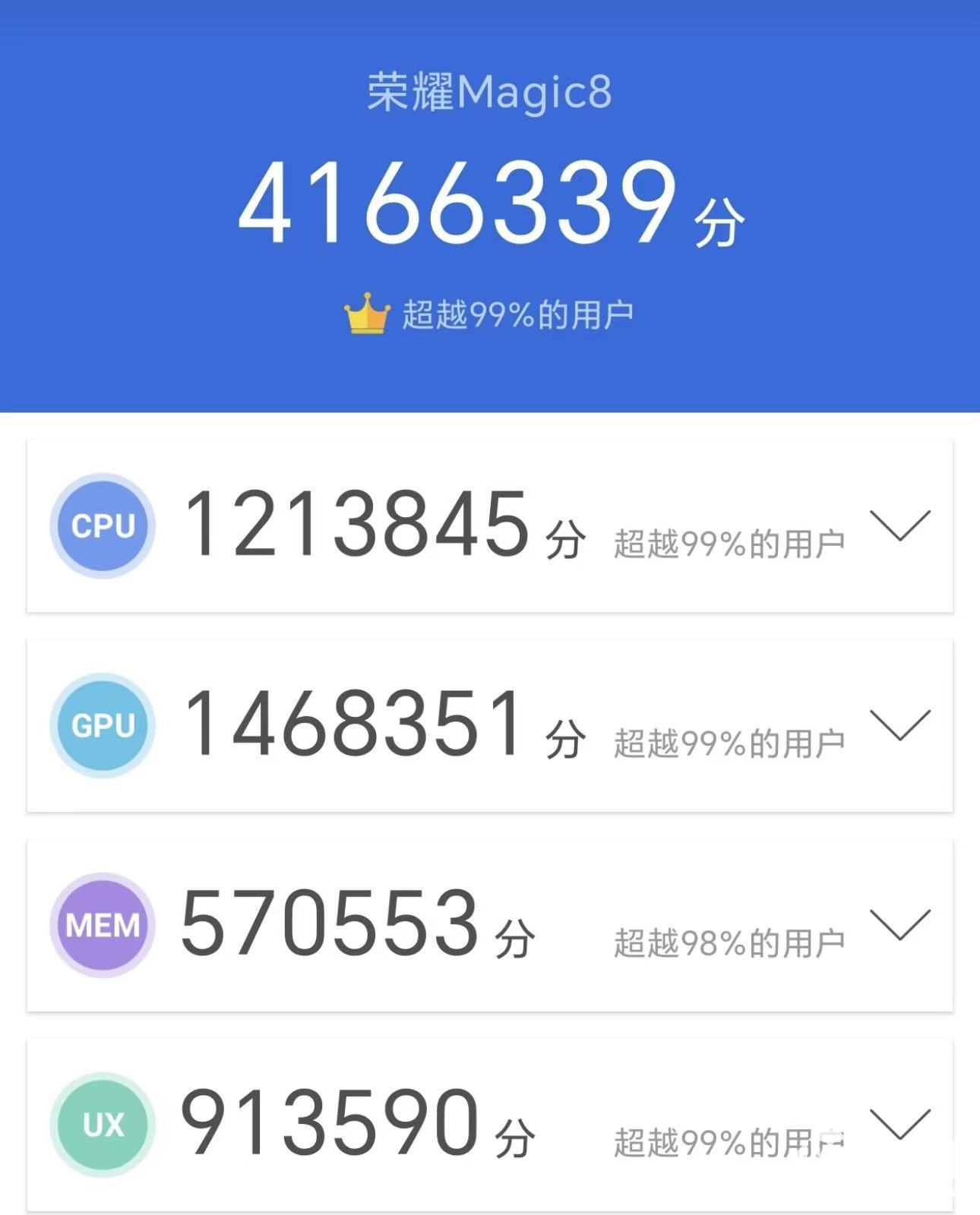 10月14日,荣耀旗舰手机产品经理李坤通过社交媒体披露,荣耀Magic8 Pro安兔兔综合跑分达4288382分,这一成绩刷新第五代骁龙8至尊版平台性能上限,稳居行业第一。