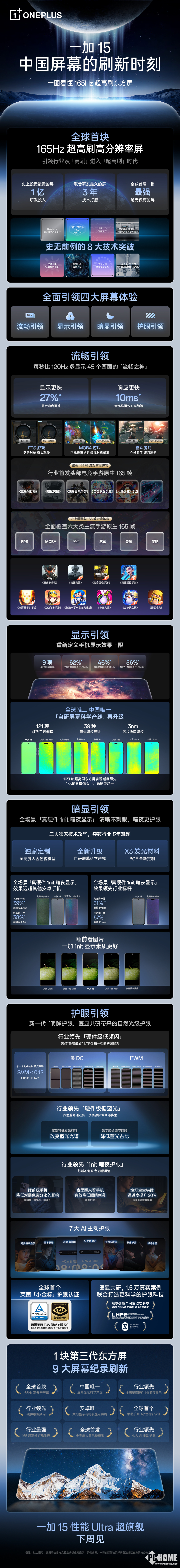 一加中国区总裁李杰介绍,第三代东方屏是迄今为止,手机上最好的一块屏幕,它拥有165Hz超高刷新率、超越 A++的显示效果、真硬件1nit的暗夜显示、全新的明眸护眼等等,在流畅、显示、暗显、护眼四大方面全面引领行业。它也代表着下一个时代旗舰屏幕体验新标准。